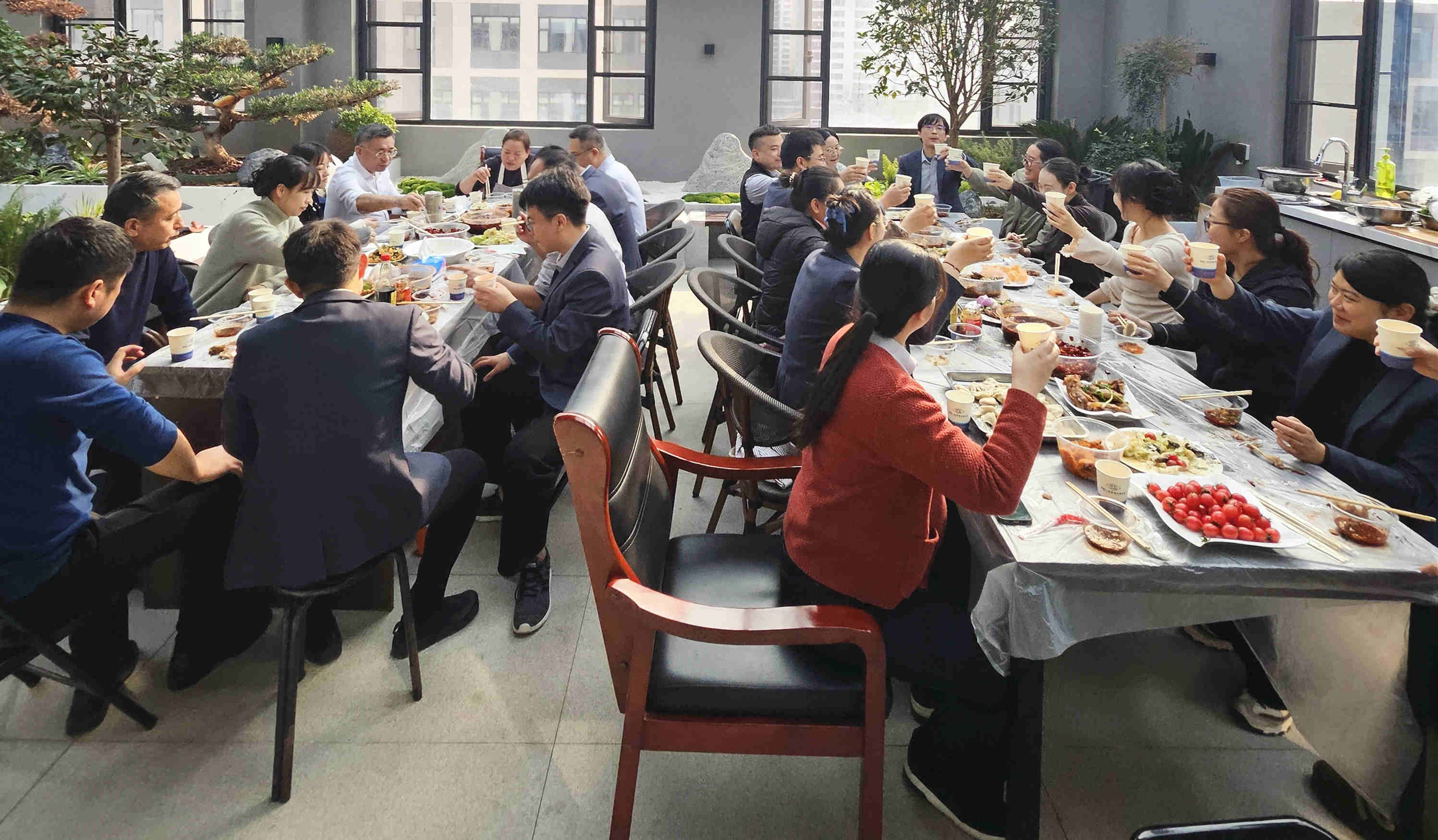 清水飄芙蓉,元寶落玉盤。熱氣騰騰的餃子陸續(xù)出鍋,誘人的香氣彌漫開來。員工們圍坐在一起,品嘗著親手制作的美味成果,醋香、辣油各取所愛,咬一口餃子,暖意從舌尖直達心底,瞬間驅(qū)散了冬日的寒意。大家一邊享用美食,一邊分享工作趣事,這一刻,忙碌的工作壓力煙消云散,取而代之的是節(jié)日的喜悅和滿滿的歸屬感。
